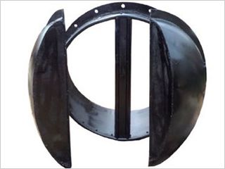 拍門具有流道正向單向開啟和反向關(guān)閉的作用。拍門的閥蓋借助于自身配重的平衡作用,在水流的作用下使門頁自動開啟或關(guān)閉,或稍加外力作用使門頁開啟或關(guān)閉;拍門蓋上設(shè)有拉環(huán),拉動拉環(huán)此蓋的開啟角度應大于60度,無卡阻現(xiàn)象,開關(guān)應自由靈活,當拍門部分泡在水中,管道內(nèi)部壓力較大,反向壓力較小時,拍門允許部分泄漏量,當河道水壓增大時,拍門將自動關(guān)閉密封。