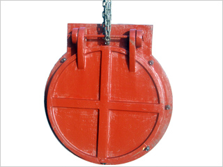 拍門(mén)具有流道正向單向開(kāi)啟和反向關(guān)閉的作用。拍門(mén)的閥蓋借助于自身配重的平衡作用,在水流的作用下使門(mén)頁(yè)自動(dòng)開(kāi)啟或關(guān)閉,或稍加外力作用使門(mén)頁(yè)開(kāi)啟或關(guān)閉;拍門(mén)蓋上設(shè)有拉環(huán),拉動(dòng)拉環(huán)此蓋的開(kāi)啟角度應(yīng)大于60度,無(wú)卡阻現(xiàn)象,開(kāi)關(guān)應(yīng)自由靈活,當(dāng)拍門(mén)部分泡在水中,管道內(nèi)部壓力較大,反向壓力較小時(shí),拍門(mén)允許部分泄漏量,當(dāng)河道水壓增大時(shí),拍門(mén)將自動(dòng)關(guān)閉密封。
